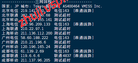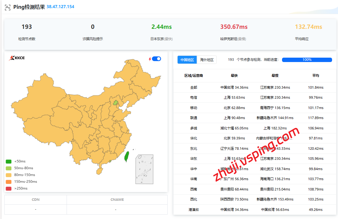 国内三网多节点的延迟测试数据: