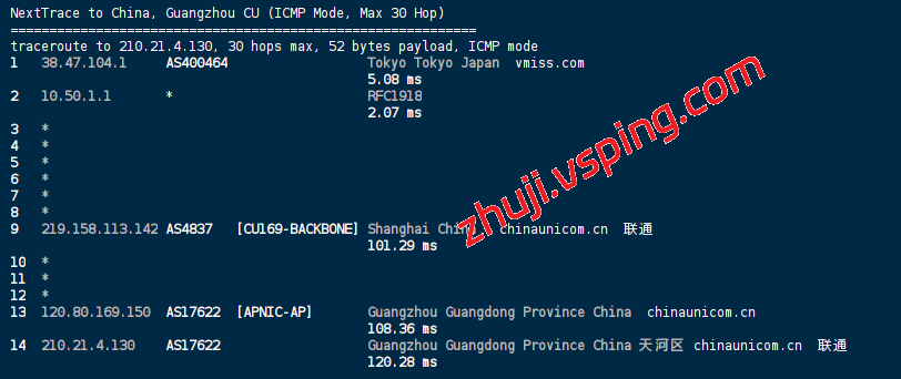 中国联通: 经由 AS4837 (CU169) 骨干直连,通过 IIJ 链路直接进入东京节点。