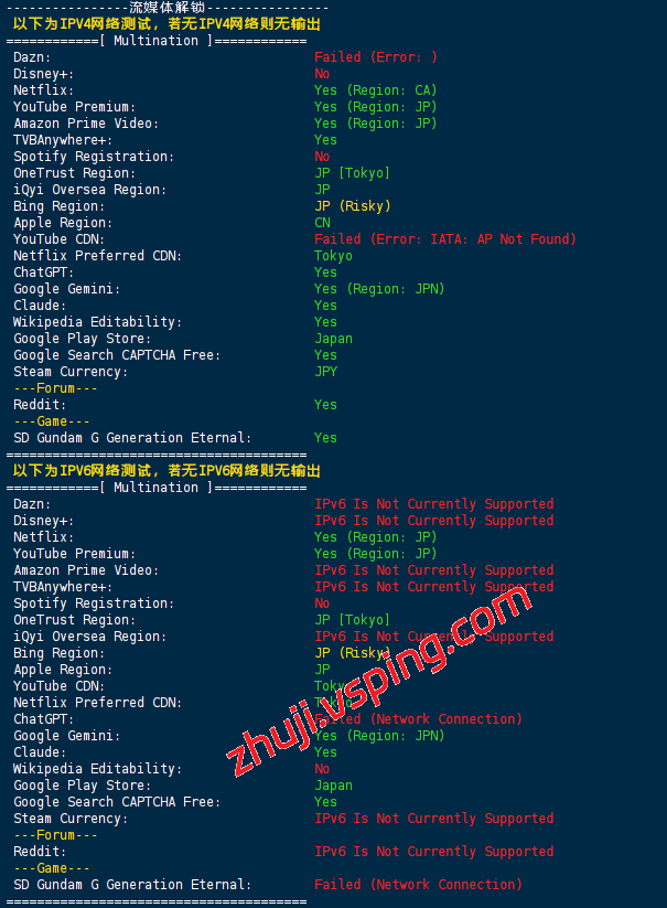 为便于用户评估该服务对特定业务的适配程度,以下提供了基于该机房的详细性能监测数据,包括流媒体解锁测试、全球延迟分布及链路追踪信息。