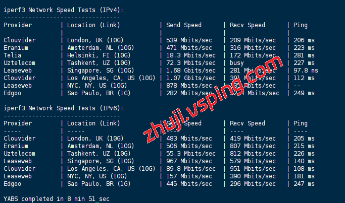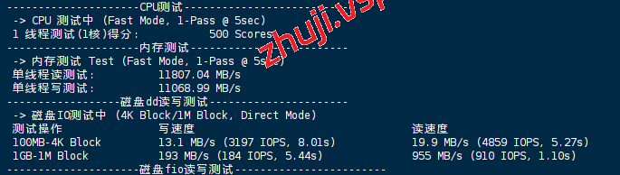 VPS部分性能测试结果: