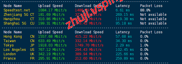 Speedtest国内多节点以及国际部分节点测试上下行速度: