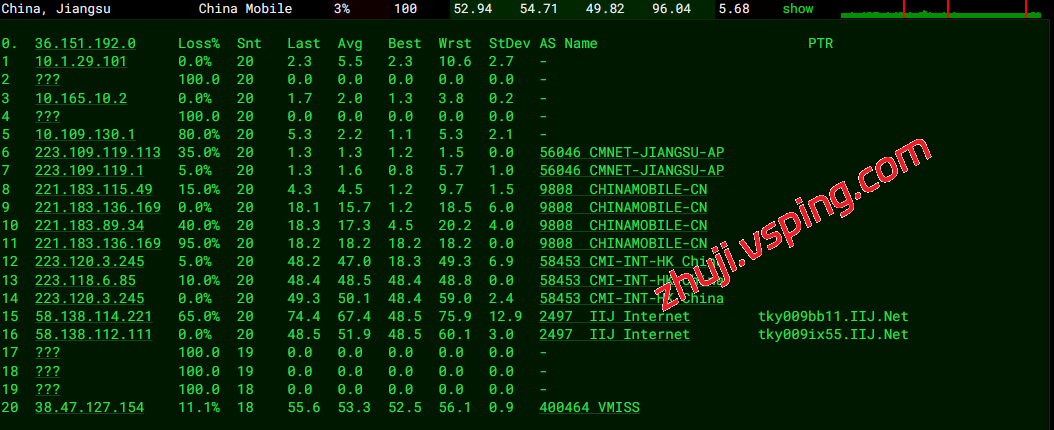 中国移动: 流量表现亮眼,经由 CMI (AS58453) 汇聚,通过香港等节点中转,最终由 IIJ 链路在东京本地实现低延迟接入。