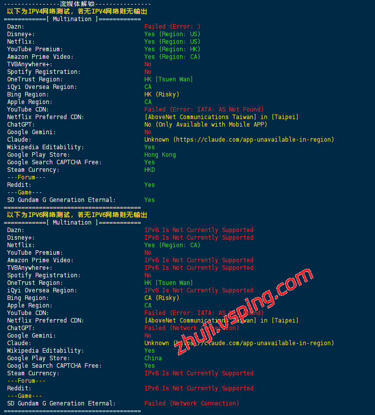 为便于用户评估该服务对特定业务的适配程度,以下提供了基于该机房的详细性能监测数据,包括流媒体解锁测试、全球延迟分布及链路追踪信息。