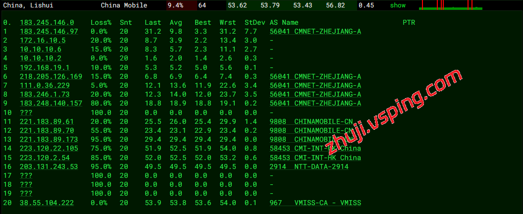 中国移动: 流量经由移动骨干网汇聚,通过 CMI (AS58453) 移动国际出口直达香港机房。