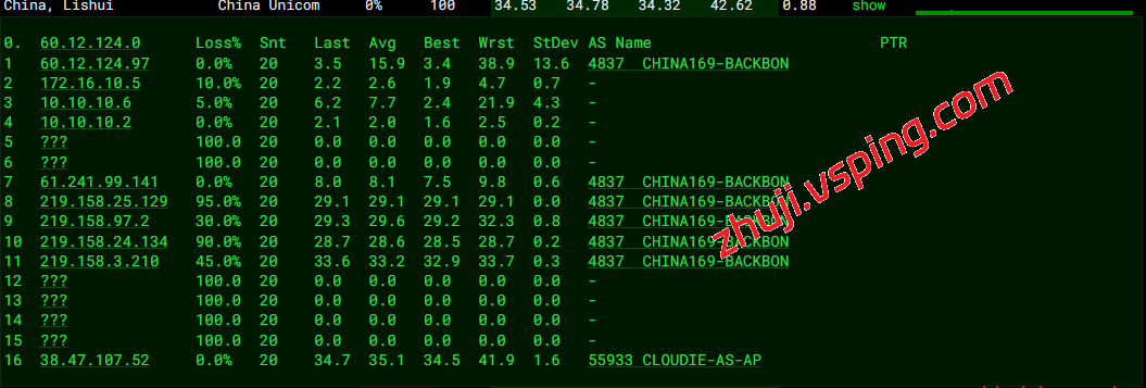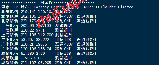中国联通: 流量经由 AS4837 (CU169) 骨干网直连,在香港本地接驳接入。