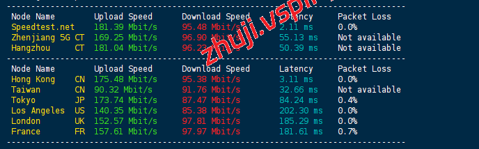 Speedtest国内多节点以及海外部分节点测试上下行速度: